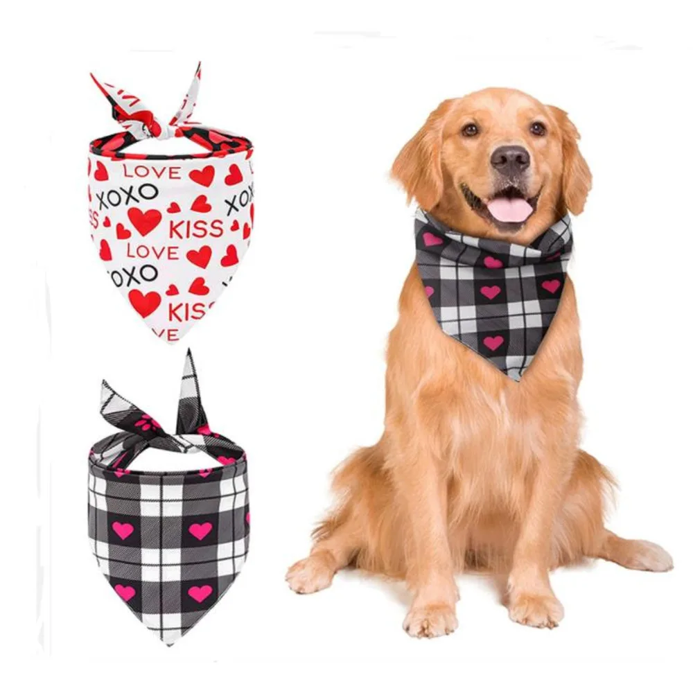 1. Pañuelos de doble cara para perro, pañuelo triangular para mascotas, toalla de Saliva para perros, suministros para el Día de San Valentín