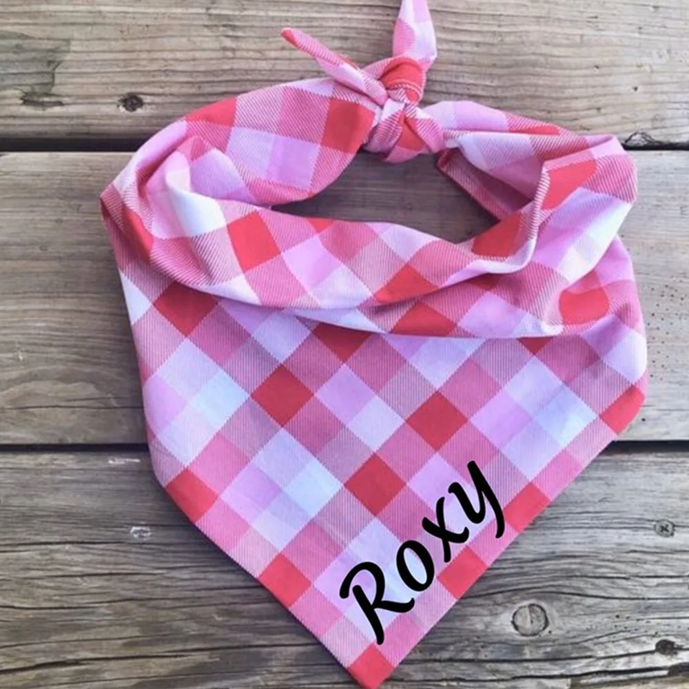 - Bandana personalizada para perro y niña, pañuelo rosa a cuadros, con nombre a cuadros, fotos personalizadas de cachorros y mascotas, Día de San Valentín