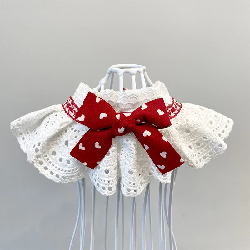 - Pañuelo con forma de corazón rojo para perros y Gatos, cuello de encaje, bufanda, títere, Accesorios para perros