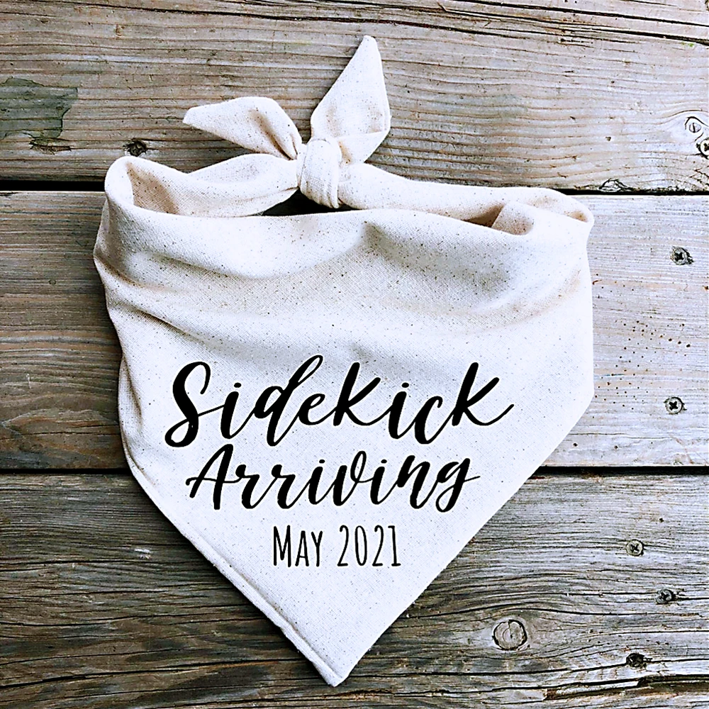- Bandana con fecha personalizada para perro, anuncio de embarazo, Sidekick, fecha para llegada, bandana para bebé, padre, abuelos, familia