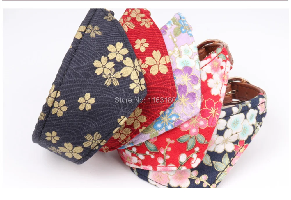 - 600 unids/lote de Collar de Bandana para perro, pañuelo ajustable para gato y mascota, pañuelo de tela de PU con estampado de flores, collar para mascotas de estilo chino